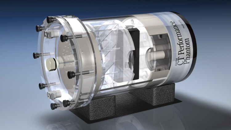 The CIRS Model 610 AAPM CT Performance Phantom offers the user a single test object that measures ten distinct CT performance parameters. The phantom design is based on the guidelines presented in Report #1 of the American Association of Physicists in Medicine Task Force on CT Scanner Phantoms. The goals of report #1 were to ¡°(1) define ¡®performance¡¯ of a CT scanner and (2) describe methods of performance testing through utilization of particular phantoms.¡± A CT number linearity insert, high contrast resolution insert and slice width insert are housed in an 8.5 ¡° diameter PMMA water tank with quick disconnect valves for ease of filling and draining between use. Also included is a 0.25¡± bone equivalent ring that can be fit over the inserts to