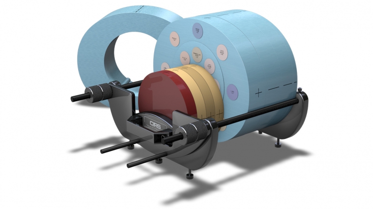 The design intent of this phantom is to provide a tool that can be used for both electron density calibration and image quality assessment of Cone Beam CT systems integrated in radiation therapy devices. The electron calibration function of the phantom enhances the outcome of the adaptive radiation therapy while the image quality features address the fine balance between optimizing image quality while minimizing radiation dose. The 062MQA CBCT Electron Density & Image Quality Phantom consists of several sections: a 100mm thick body slab, a 100 mm thick CBCT Image Quality phantom, a 50mm thick Electron Density Phantom, and a Bolus consisting of a 37.5mm thick uniform slab, a 12.5mm thick uniform slab and a 50mm thick uniform slab. The 100 mm thick body section has a central hole that receives the CBCT Image Quality Phantom. Each Bolus slab is drilled to accommodate an ion chamber insert and allow for ion chamber measurements regardless of the position of the Image Quality Insert. The thicknesses of the sections were selected to allow for positioning of any of the layers containing the Image Quality features in the central axis of the beam. Also sections of different thickness decrease the increment with which the electron density section can be offset from the central axis. The phantom support along with laser alignment marks allow for easy and quick positioning of the phantom on the accelerator couch. The phantom is placed on the support rails with the help of machined grooves. Buffer plates are provided to decrease the artifacts from the support device and to allow the user to access the handles on the support plates. The leveling of the support and implicitly the phantom is done by adjusting leveling feet. Features; ? Perform all CT Image QA tests for AAPM TG Report #1 ? Use ionization chambers for dose measurements ? Perform dose measurements using Ion chamber ? Calibrate Electron Density in multi-slice CT and Cone Beam CT ? Perform central axis and off-set measurements ? Position simulated tissue materials in CT & CBCT energy range at 17 different locations ? Optimized for volumetric imaging ? Quick positioning and customized loading configurations The One Tool Solution for Electron Density Calibration & Image Quality Assessment CBCT Image Quality Phantom The Phantom is comprised of four layers: spatial resolution, CT number linearity/slice thickness, low contrast and uniformity. The positioning of the different layers of the CBCT Image Quality phantom at the central axis can be done with the phantom in the 100mm body section or with the phantom placed directly on the support device. Spatial Resolution Layer The Spatial Resolution Layer is designed to evaluate the spatial resolution of IGRT systems. Line pair patterns from 1 lp/cm to 16 lp/cm are embedded in the background. In order to minimize artifacts, each line pair pattern is made from a material with 350HU greater than the background attenuation. The line pair patterns are 3D patterns 12mm in height along the longitudinal axis of the CBCT Image Quality Phantom. The spatial resolution targets are arranged in a circular pattern. CT Number Linearity and Slice Thickness Layer The CT number Linearity and Slice Thickness Layer is designed to determine Contrast-to-noise Ratio, Hounsfield number accuracy and Slice Thickness Sensitivity. Six rods made of Air, Low Density Polyethylene (LDPE), Polystyrene, Acrylic, Delrin and Teflon are used to measure the CnR and Hounsfield number Accuracy. Three angled air channels arranged in an equilateral triangle can be used to assess Slice thickness sensitivity. Low Contrast Layer The Low Contrast Layer is intended to assess the system’s ability to detect small differences in contrast. It contains three sets of low contrast rods with linear attenuation differences of 0.5%, 1% and 2% relative to the background material. The diameters of the low contrast rods were chose to provide a 0.5 ratio between two adjacent rods by cross section and volume. Additional features are designed to evaluate the magnification on the orthogonal axes of the transversal image and as input for calculation of the Point Spread Function and subsequent calculation of Modulation Uniformity Layer The Uniformity Layer is designed to measure the system¡¯s ability to produce uniform images across the field of view of an object with highly homogeneous physical properties in all directions. Electron Density Phantom The Phantom consists of nested disks made from Plastic Water?. The nested disks allow simulation of both head and abdomen phantom configurations. Eight different tissue equivalent inserts can be positioned at 17 different locations within the scan field. The geometry of the phantom also enables the user to take measurement offset from the central axis