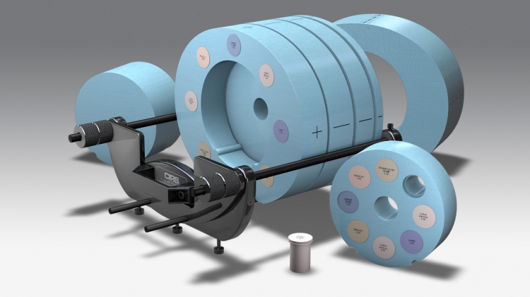 The Cone Beam (CBCT) Electron Density Phantom is an extended version of the CIRS Model 062M Electron Density Phantom and specifically designed for Cone Beam CT Imaging systems. Preliminary data shows that there may be differences between the HU readings for Diagnostic CT and Cone Beam CT. The geometry of the Cone Beam CT requires additional material and suggests that off central axis measurements should be taken. The phantom was designed in collaboration with Dr. Peter H. Cossmann, PhD to provide a reliable tool for CT number to electron density calibration in volumetric imaging. Reliable CT calibration curves help enable treatment plan adaptation directly from Cone Beam CT data. Additionally, the phantom can accommodate any ion chamber for dose measurements and validation of heterogeneity correction based on the corrected CT calibration curve. The Model 062MA CBCT Electron Density Phantom’s size covers geometries for imagers with dimensions of up to 40 cm x 40 cm. It is made of Plastic Water? and contains the same set of tissue equivalent electron density inserts as the standard Model 062. Additional interchangeable slabs allow for repositioning of the electron density section with an increment of 2.5 cm. The 062MA is just one of three configurations available as a part of the Cone Beam CT Electron Density & Image Quality Phantom System. Features; ? Can be used for multi-slice CT and Cone Beam CT ? Can be configured for central axis and off-set measurements ? Manufactured from durable epoxy ? Tissue equivalent inserts can be positioned at 17 different locations ? Special marker inserts enable quick assessment of distance registration ? All materials accurately simulate indicated tissue within CT and Cone beam CT energy range