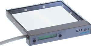 Transparent ionization chamber with integrated electronics and internal LCD display. The DAP W1 is intended to be mounted on the face of diagnostic X-ray collimators for measuring dose area product or AEP (Area Exposure Product) during diagnostic radiological examinations. The DAP W1 was especially designed for mounting close to the X-ray tube and is inserted into the guide rails of the collimator. The fixation of the chamber may be done by the user. Delivered with optional choice of insertion frames (176 or 167 mm) or adapter for additional filters.