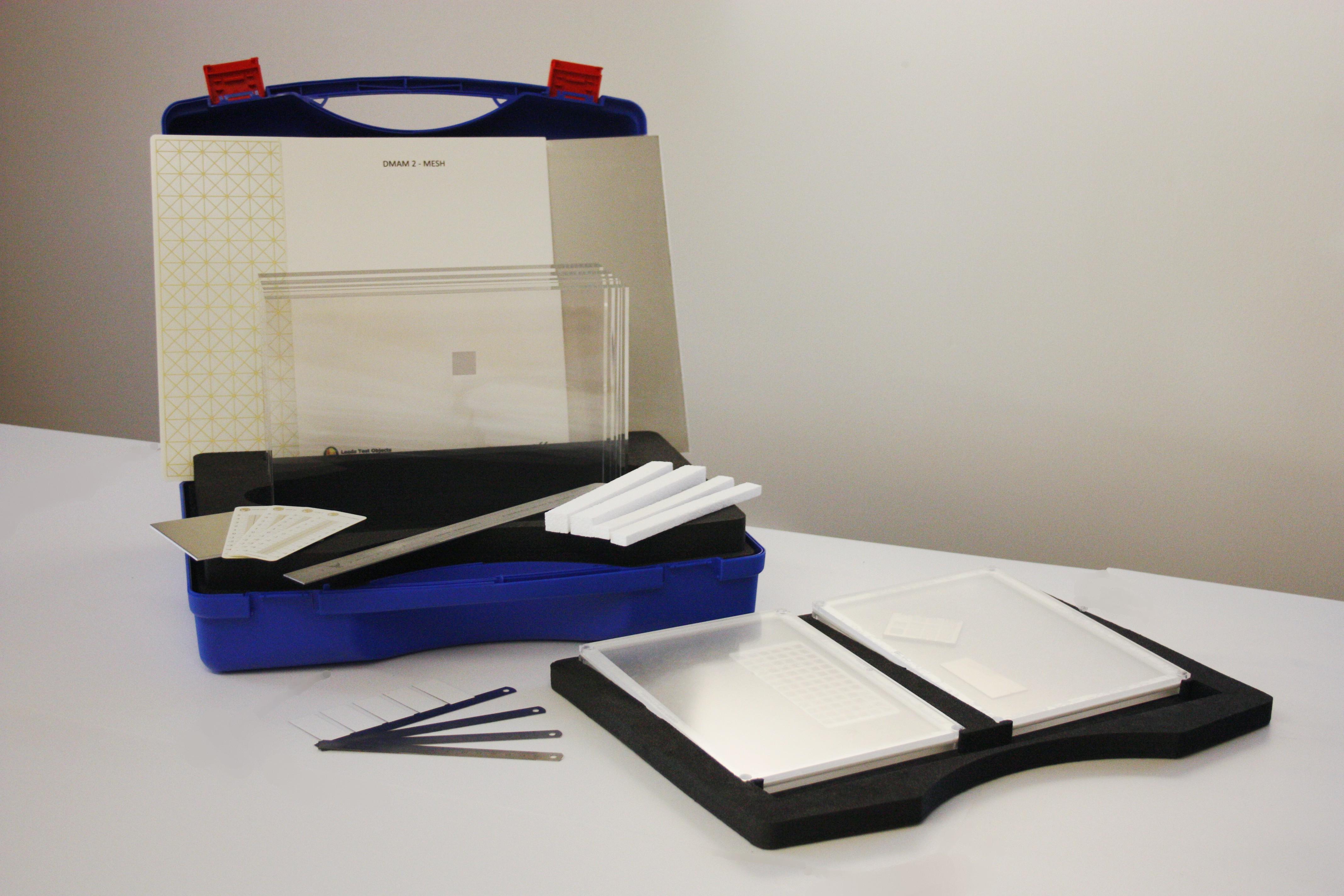 Designed in accordance with: European guidelines for quality assurance in breast cancer screening and diagnosis (fourth edition) – ISBN 92-79-01258-4 A set of test objects for digital mammography systems, designed to be used quickly and easily on a regular basis to provide an ongoing check of imaging performance, particularly those aspects which are most liable to deterioration. An ongoing record of the results of these checks will reveal any trend towards deterioration in imaging performance. DMAM2 contains the following: Threshold Contrast Details 63 contrast details in 6 sizes, dia range from 0.1mm to 2.0mm, contrast range 0.489% to 27.56% Filaments 6 groups of multi-directional filaments 0.40mm to 0.20mm diameter PMMA plates Polymethylmethacrylate (PMMA) plates with a dimensional tolerance of ¡À0.1mm. (1pc) 300 x 240 x 20mm (inc encapsulated 99.99% Al foil for SNR, CNR) (2pc) 300 x 240 x 20mm (1pc) 300 x 240 x 10mm (1pc) 300 x 240 x 5mm Radiopaque mesh 400 micron (mesh size #40) covering an area 300 x 240mm Radiopaque grid Horizontal, vertical and diagonal lines covering an area 300 x 240mm Stainless steel straight edge accurate to ¡À20 microns. Angled at 3¡ã Spatial Resolution Test Pattern 0.5 – 14.3 LP/mm. Angled at 45¡ã X-ray to Light Field Alignment Radiopaque Rulers x4, Phosphor Screens x5 Aluminium filter 2.0 ¡À10% mm 99.9%+ purity for homogeneity tests