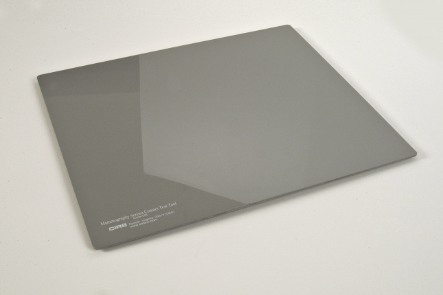 The CIRS Model 028 Mammography Screen Film Contact Test Tool is designed for easy evaluation of mammography cassette screen to film contact. Testing process may be used on new cassettes and cassettes already in service. Screen film contact is directly related to mammographic image quality and image sharpness. Visualization of optimum quality images and resolution is critical while viewing microcalcifications and small masses or nodules. Minimal setup is required. Place the test tool on top of the cassette to be evaluated. Position the compression device as close to the X-ray tube as possible, select manual technique, or auto setting which will provide a film density between 0.70 and 0.80. Expose the film at 25 to 28 kVp. Process film as usual, and view on light box at a distance of at least 3 feet. Darker areas in the image demonstrate unacceptable screen-film contact.