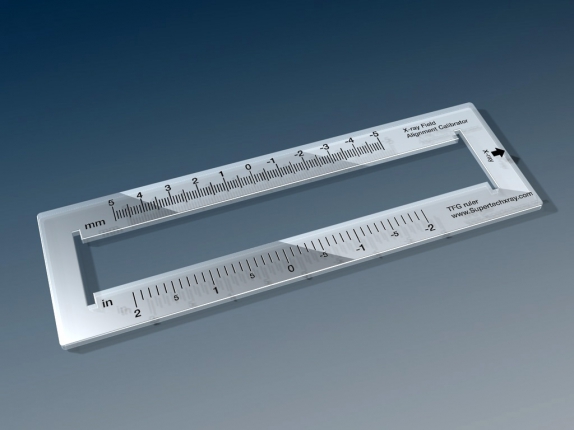 Confirmation of alignment between laser lights and the X-ray energy field is a routine QA check. Although there is equipment available, they do not provide a permanent record of the results. The Model 033 TFG Ruler is a low cost, simple to use tool that can provide this permanent record. The TFG Ruler is a Light Field Alignment Calibrator Tool. The TFG Ruler is designed to work as a stand alone product, or to work in tandem with the Unfors DXR+ Light Field Alignment Tool. When used with the DXR+ ruler, the TFG Ruler can be used for FFDM X-ray field overlap measurements. The acrylic ruler has radiopaque indices at 1 mm increments making it suitable for mammography applications. The cutout enables the TFG ruler to be compatible with the Unfors DXR+ or alone. To use, position the zero index at the edge of the light field, expose the film and then visually inspect the visible measurement index on the film and record your results. Features; ? Measures from Zero Point to ¡À 5 mm ? Works in tandem with Unfors DXR+ or stand-alone ? Create permanent alignment record ? Me